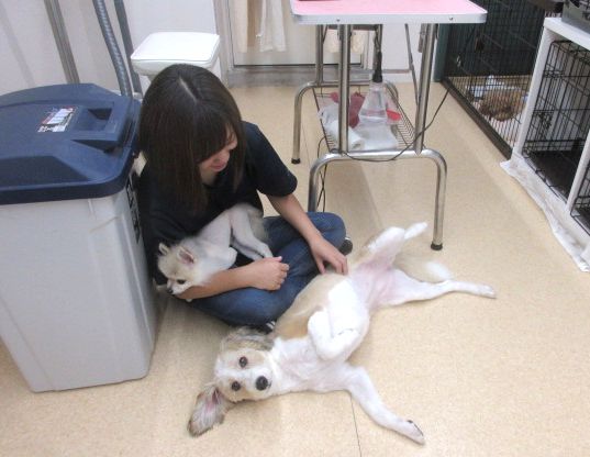 スタッフともすぐに仲良し💛お腹を出して甘えて「触って~~♡」のこのポー(*^-^*)♪